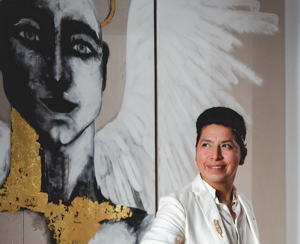 One of my favourite pieces is The Conquest, where an Inca princess falls in love with Pizarro. I covered her in gold to symbolise that union and the cultural richness that survives beyond the official narratives. I’m a romantic; I believe that love must be present in everything—especially art.